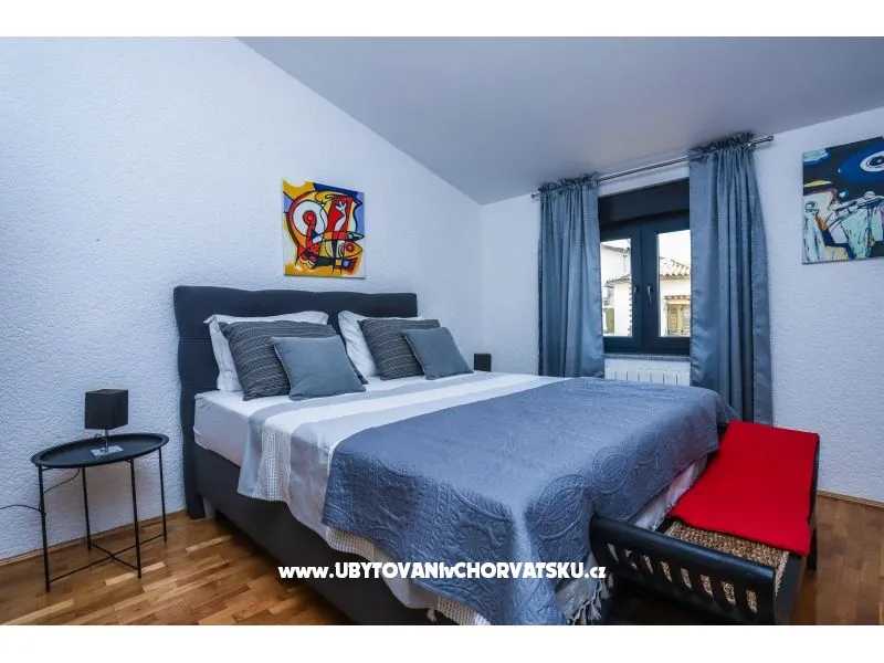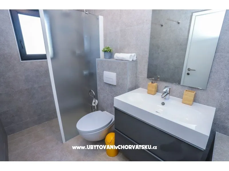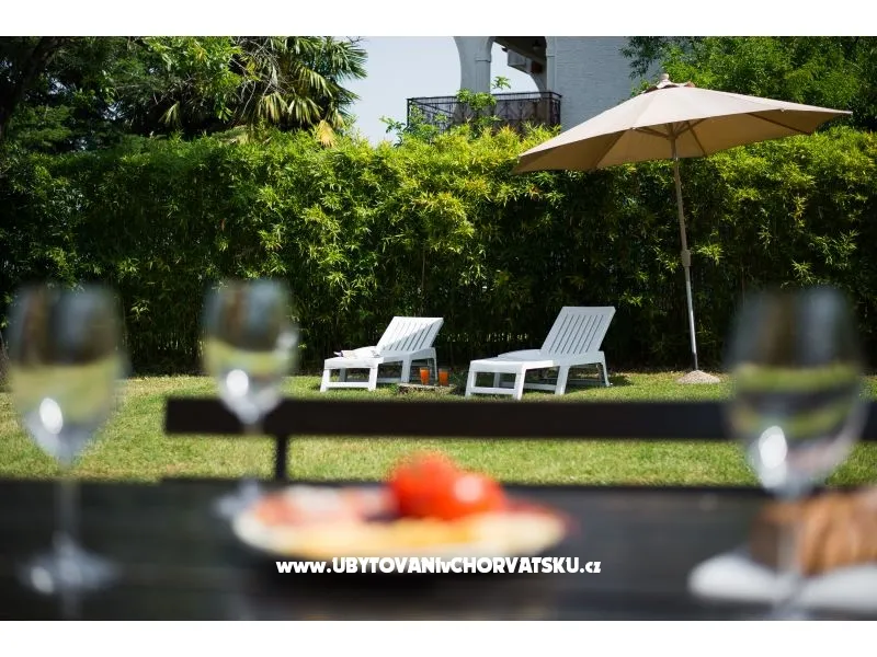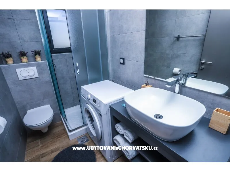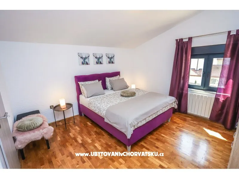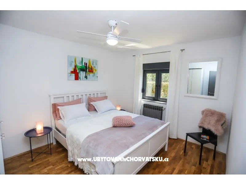 Apartman se sastoji se od dvije spavaće sobe, kupaonice, kuhinje, dnevnog boravka i velike natkrivene terase. Apartman je opremljen perilicom rublja i posuđa, pećnicom, WI-FI, klima uređajem, TV-SAT.