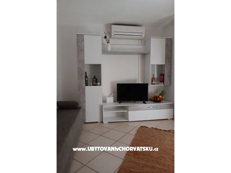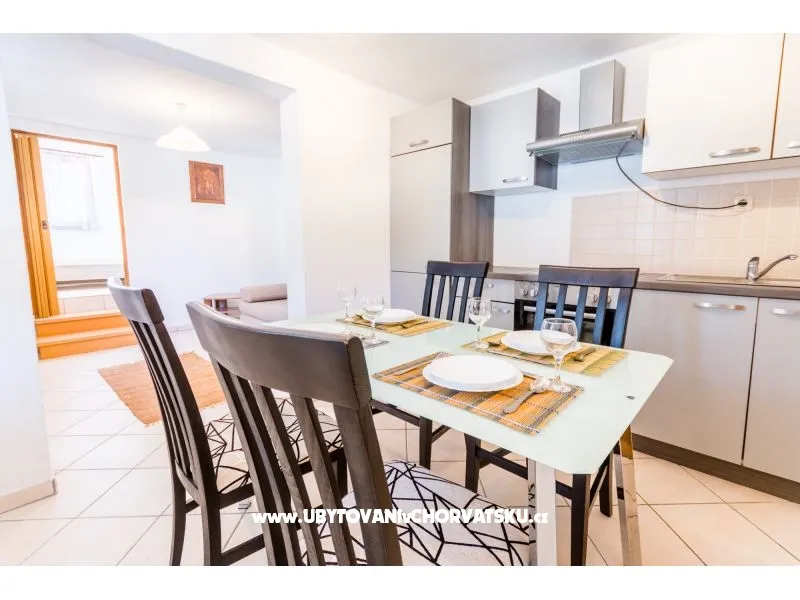 Villa Klara - AP1 je jednosobni apartman koji se sastoji od kuhinje, dnevne sobe, spavače sobe, kupaonice sa wc-om i tušem, terasom sa pogledom na more veličine 40 m2. Opremljen komplet suđem, posuđem i posteljinom za tri osobe. Udaljen od plaže 50 m