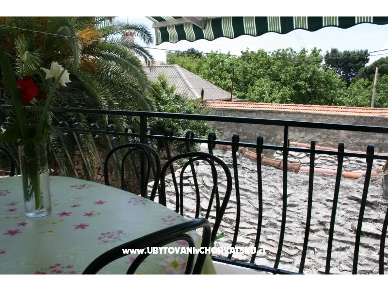 Moderno opremljen apartman za 4+1 osobe Apartman se nalazi na drugom katu – južna strana kuće s pogledom na more i terasom. Sadrži dvije spavaće sobe s po dva kreveta, kupaonicu, kuhinju i blagavaonicu sa sofom koja se može postaviti u dodatni peti krevet
