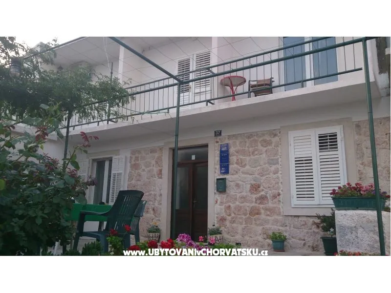 Kuca za odmor nalazi se 100 metara od mora i centra.Kuca ima odvojen ulaz sa velikom terasom i pogledom na cijelo mijesto ,i stan na spratu tako , kuca moze primiti dvije obitelji , za odmor .