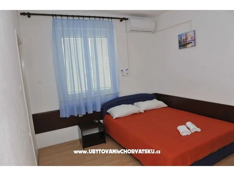Apartman za 4 osobe. Sastoji se od dnevnog boravka sa kuhinjom, jedne sobe sa francuskim ležajem i još jednim krevetom, balkonom sa pogledom na more.