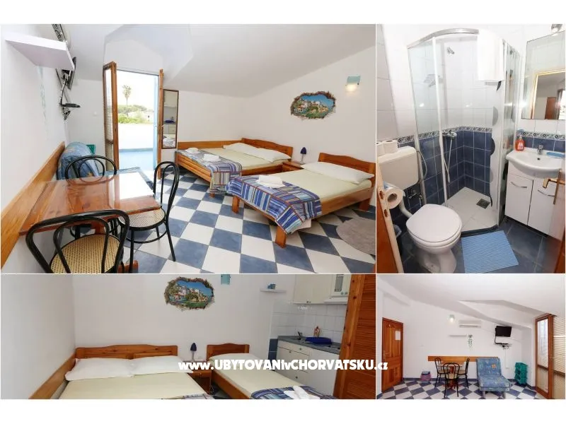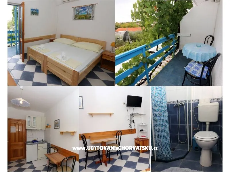 Studio apartman za 2 osobe ima balkon, 1 bračni krevet, klimu, wc, tv, mini kuhinju, wifi. Nudimo polupansion za svoje goste. Od prve plaže smo udaljeni oko 200 metara.