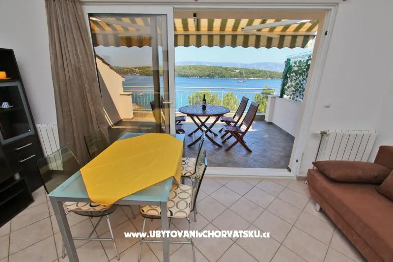 Apartman Terra nalazi se u prizemlju, komforan je i ima veliku prostranu terasu pogodnu za druženja. Terra je ugodna, posebno ljeti. Predivan kameni komin nalazi se u blizini i poziva na pripremanje ukusne ribe i mesa.
