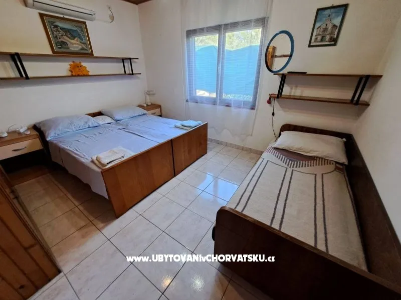 Kuća se sastoji od dva dvosobna apartmana(A1 je za iznajmljivanje) u prizemlju. Kuća je nova u borovoj šumi u blizini prekrasne šljunčane plaže udajene 60m. Apartman A1 se sastoji od dvije spavaće sobe 2+2 ležaja (bračni kreveti). Apartmani su u prizemlju