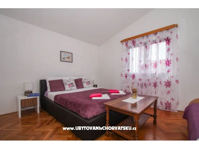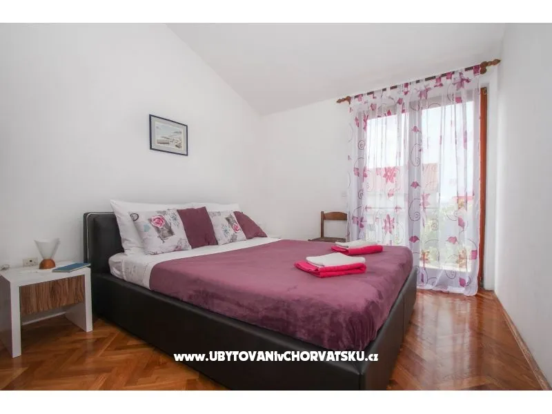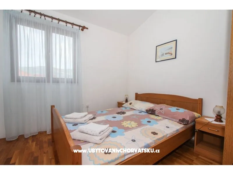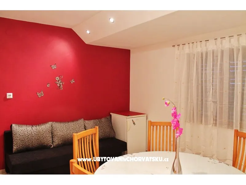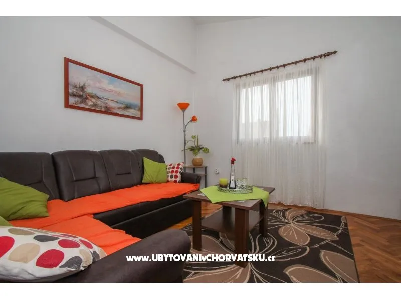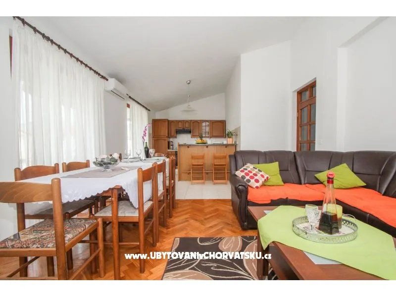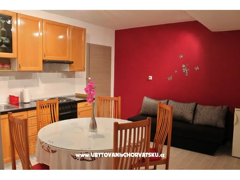 1 spavaća soba s bračnim krevetom i krevetom na razvlačenje, kauč na razvlačenje za 2 osobe u dnevnoj sobi. Apartman se nalazi na prvom katu obiteljske kuće.