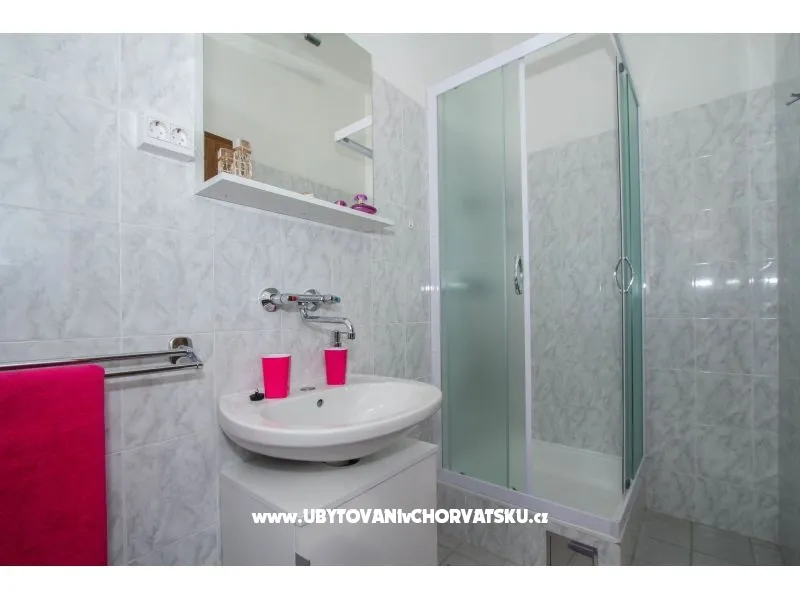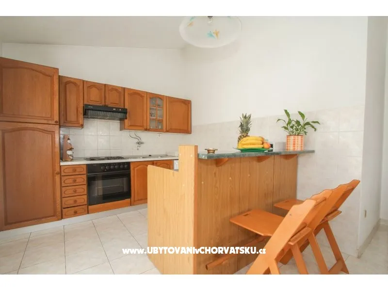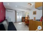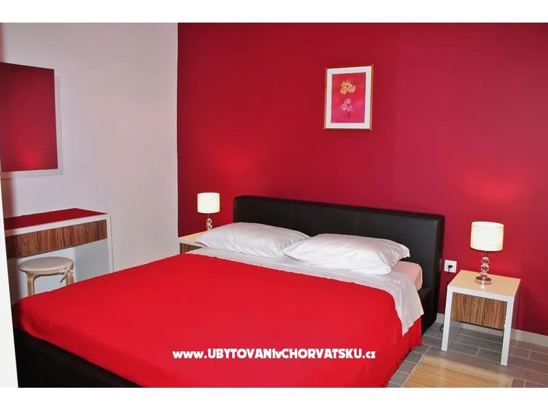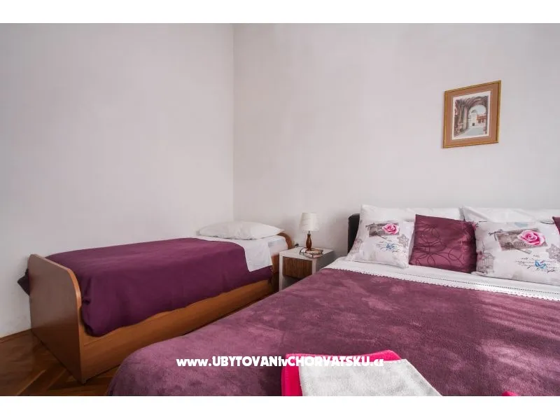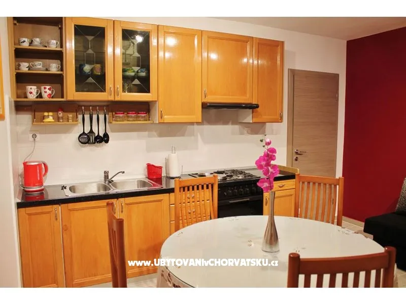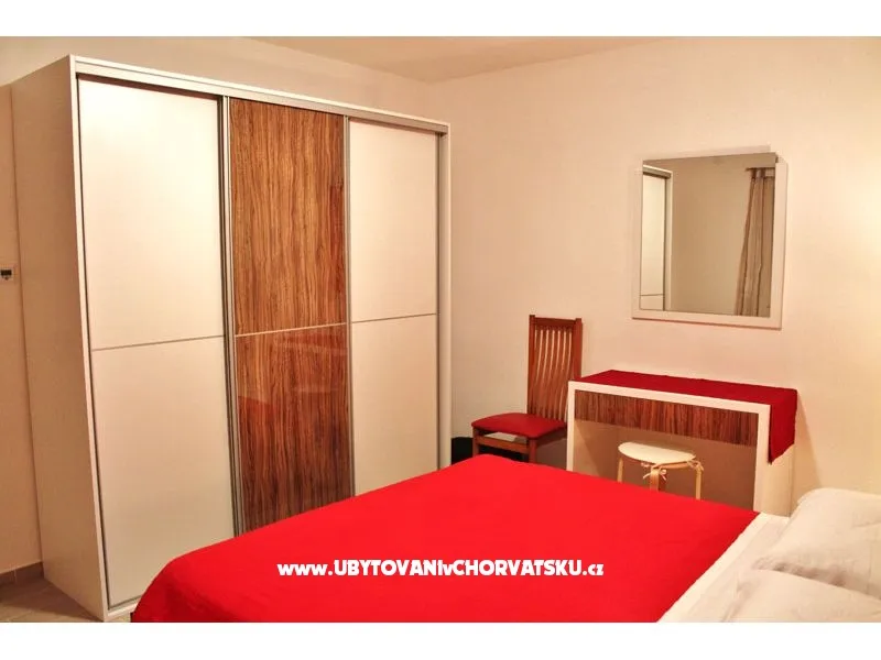 1 spavaća soba s bračnim krevetom i krevetom na razvlačenje, kauč na razvlačenje za 2 osobe u dnevnoj sobi. Apartman se nalazi na prvom katu obiteljske kuće.