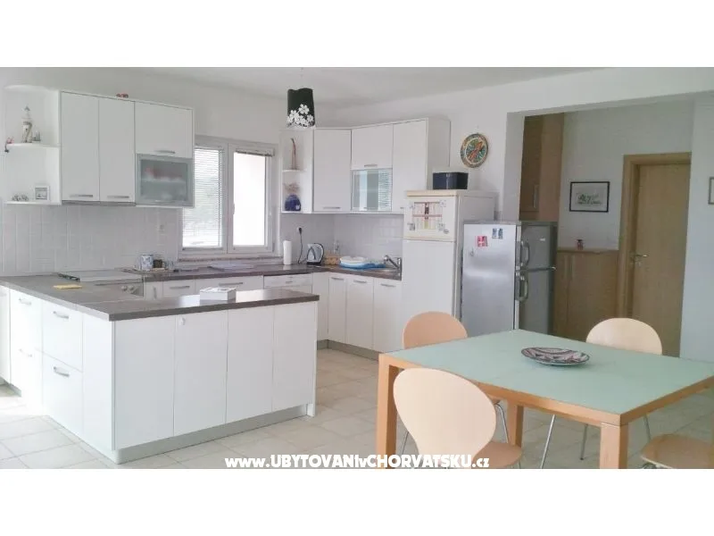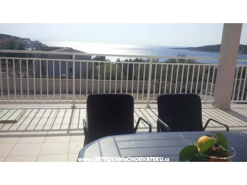 Veliki apartman u prizemlju dvokatnice, sa terasom od 70m2 za uživanje i boravak. Sve sobe i terasa imaju pogled na more, udaljeno 100 m od kuće. Za obiteljski odmor.