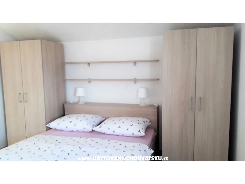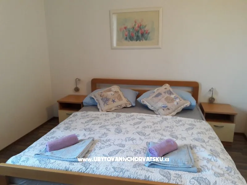 Komotan apartman na prvom katu s pogledom na otvoreno more. Ima jednu spavaću sobu, uz koju je i drugi sanitarni čvor, kuhinju, blagavaonicu i dnevni boravak s izlazom na balkon, te kupaonicu.