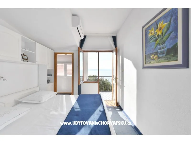 Apartman se sastoji od jedne dvokrevetne, jedne četvero krevetne sobe , a dva ležaja su u dnevnoj sobi. Ima jednu kompletnu kupaonicu te jedan toalet s umivaonikom. Dva balkona su s pogledom na more.