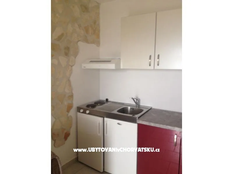 Studio apartman sadrži sobu sa bracnim krevetom i krevetom ispod kojeg se nalazi pomoćni lezaj,mini kuhinju,kupatilo,balkon sa pogledom na more.