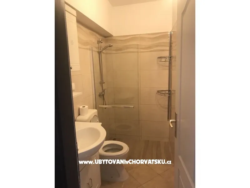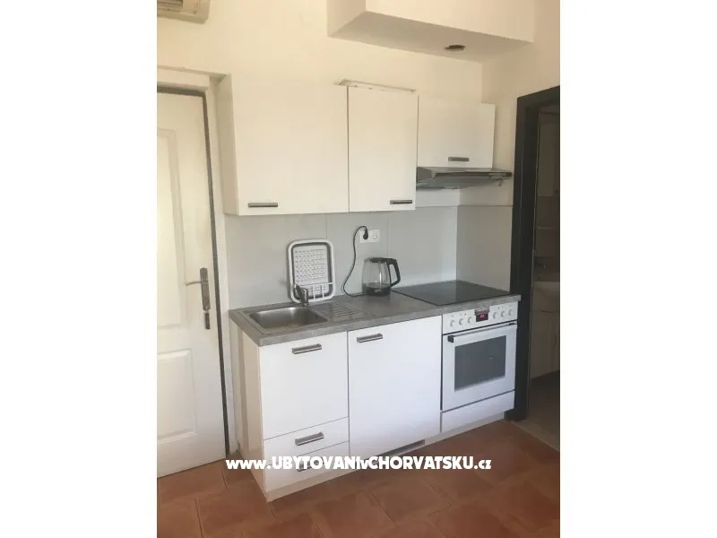 Apartman (2+2)sadrži jednu odvojenu spavacu sobu, kuhinju (kuhalo,frižider,posuđe...) kauč i fotelju na razvlačenje ,stol s stolicama, kupaonicu, balkon s pogledom na more, klimatizaciju.