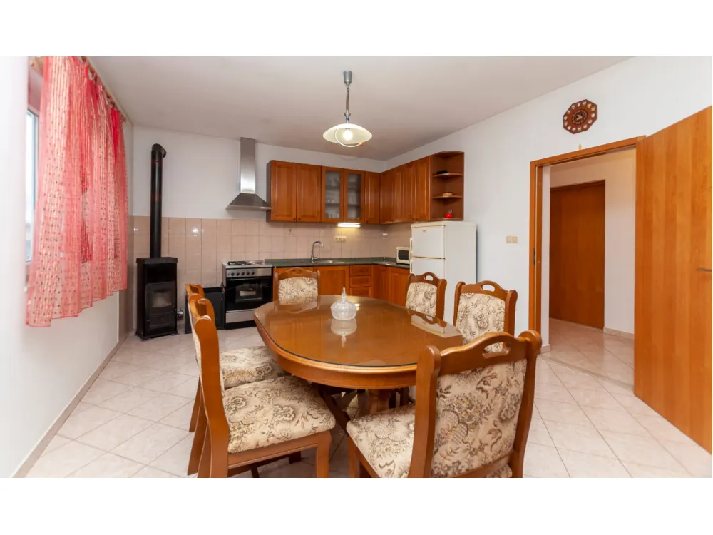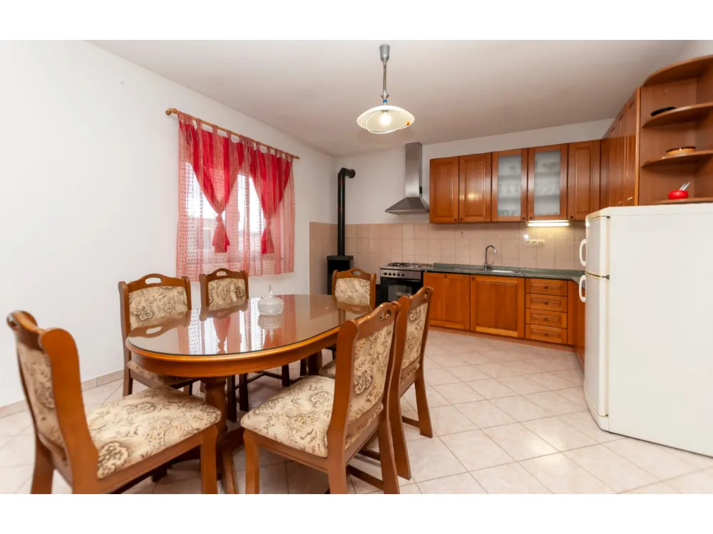 Kuća se nalazi u prekrasnoj prirodi s pogledom na okolna brda i planine. Ima jednu spavaću sobu s bračnim krevetom, plus dvije odvojene sobe s pojedinačnim krevetima, kupaonicu s tušem, kuhinju i veliki dnevni boravak s kaučem na razvlačenje. Velika natkr