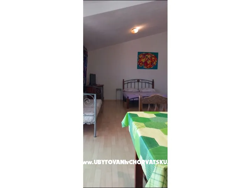Studio apartman na pola puta između Splita i Makarske (Split 35km;Makarska 25km) udaljen od malog gradića Omiša 8km. Apartman je na mirnoj i tihoj lokaciji 250 m od plaže i s prekrasnim pogledom na more i otok Brač.