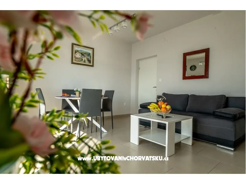 Apartmani Sonata se sastoje od 4 apartmana. Apartman OPERA ima 3 sobe, 3 kupaonice , veliku kuhinju/dnevni boravak i veliku terasu od 40 m2 sa pogledom na more. Apartman SONATA ima 3 sobe, 3 kupaonice, kuhinju/ dnevni boravak, balkon i terasu sa pogledom na more. Apartman RONDO ima 2 sobe i 2 kupaonice, kuhinju, dnevni boravak, terasu i balkon sa pogledom na more. Apartman ARIA ima 2 sobe i 2 kupaonice, dnevni boravak i kuhinju te 2 manja balkona sa pogledom na more. Apartmani su velikih kapaciteta i mogu primiti 2 do 3 obitelji. Svaki apartman uključuje najmanje 2 parkirna mjesta. U cijenu su uključeni WIFI, parking i Klimatizacija. Kuća se nalazi u mirnom predgrađu Omiša, 4 km od centra. U blizini se nalaze supermarketi i restorani. (5min hoda).