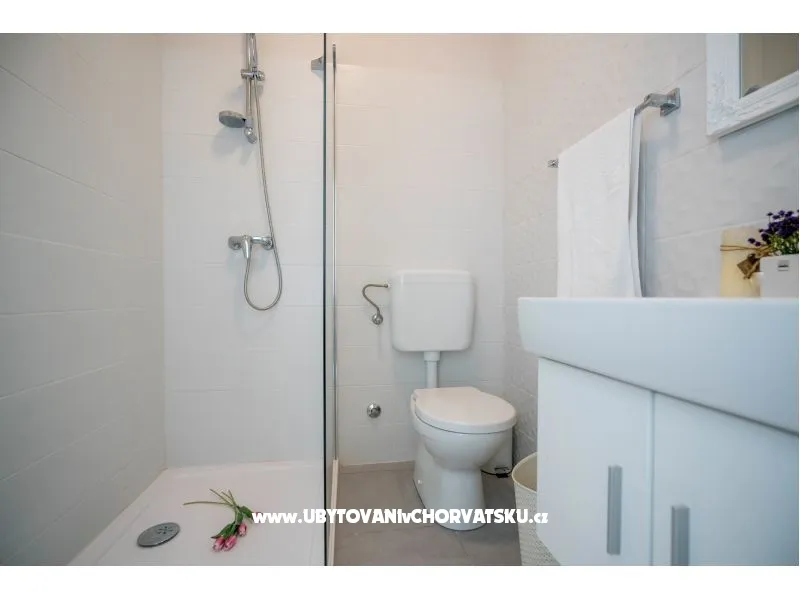Kuća se nalazi na mirnoj lokaciji. Plaža i more su vrlo čisti. Pogled cijele kuće je na more. Klima, parking i wifi su uključeni u cijenu. Apartman ima 3 sobe i 3 wc. Dnevni boravak i kuhnju.