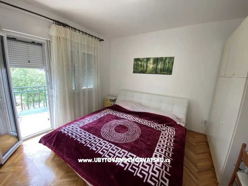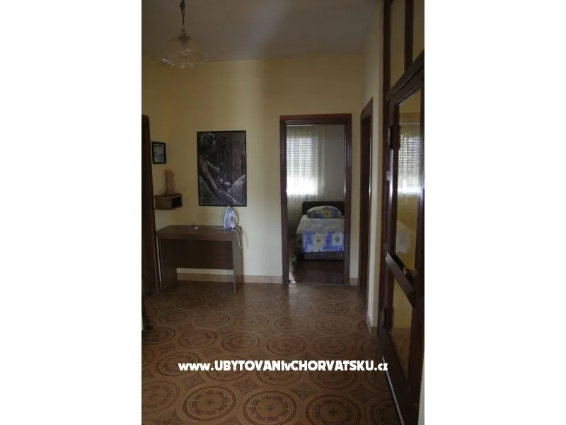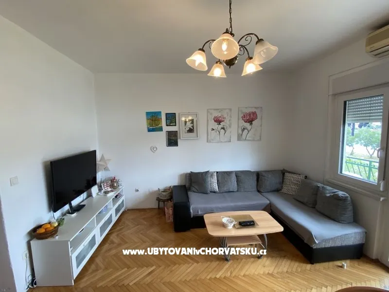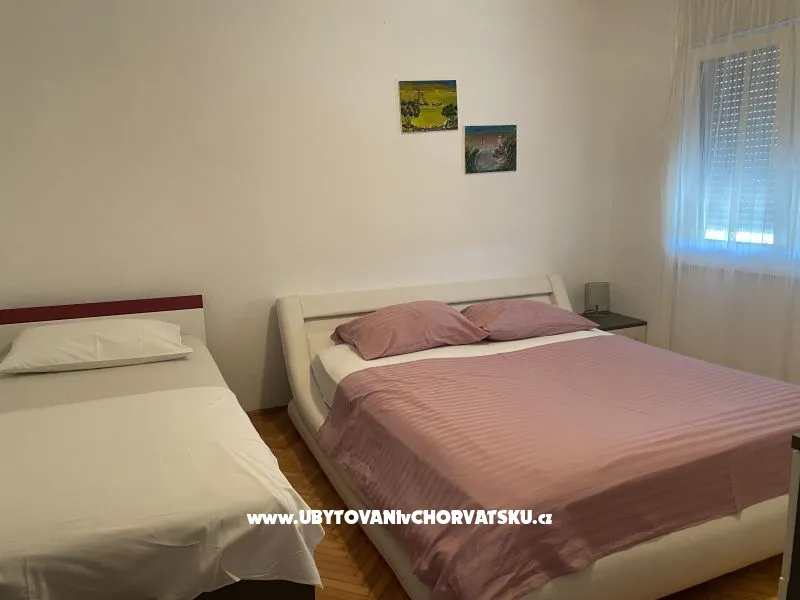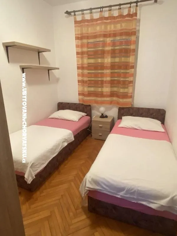 Apartman se nalazi na katu sastoji od 4 sobe: dvije trokrevetne,jedne s bračnim krevetom i jedne s dva zasebna kreveta. Apartman ima dva kupatila sa tolaetom.veliki dnevni boravak i kompletnu kuhinju.