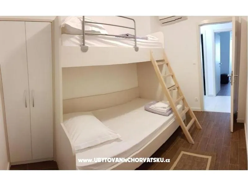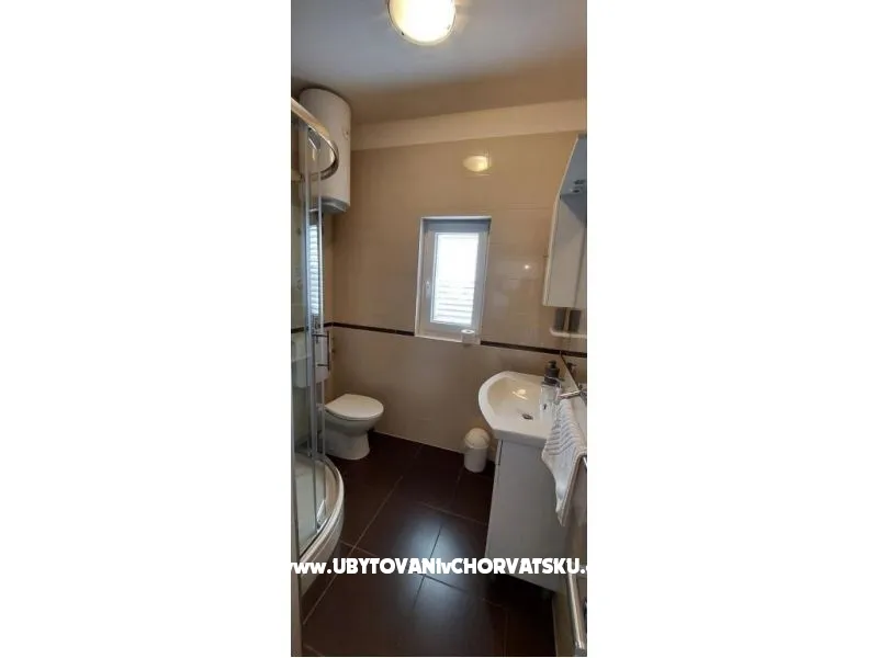 Kuća je smještena na poluotoku , udaljena od Trogira 25 km i Primoštena 23 km , Split 48 km Kuća je na dva kata , prizemlje : kuhinja , dnevni boravak ,kupatilo , dvije sobe sa kupatilom i bračni krevet , soba sa krevetom na kat , 2 klima uređaja ( 1 u dnevnom boravku ,1 u hodniku - sobe) velika terasa cca 30m2 , sa terase se izlazi u vrt i bazen. U vrtu stol za 10 osoba . Kat : kuhinja , dnevni boravak 2 ,kupatilo , dvije sobe i bračni krevet , soba sa krevetom na kat , 4 klima uređaja ( 1 u dnevnom boravku ,3 - sobe) velika terasa cca 30m2 , U sklopu kuće je natkriveni ( sjena )parking za 5 vozila . Plaža je udaljena 100-120m na istok i zapad ( poluotok)