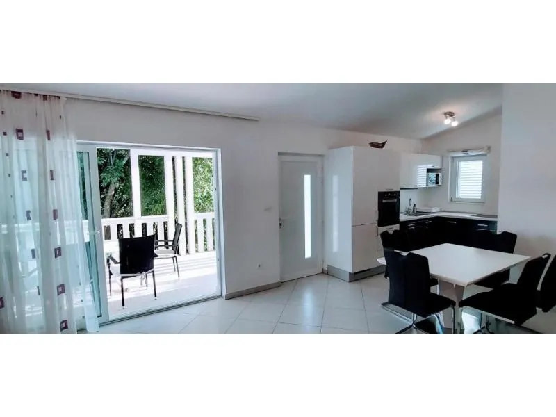 Kuća je smještena na poluotoku , udaljena od Trogira 25 km i Primoštena 23 km , Split 48 km Kuća je na dva kata , prizemlje : kuhinja , dnevni boravak ,kupatilo , dvije sobe sa kupatilom i bračni krevet , soba sa krevetom na kat , 2 klima uređaja ( 1 u dnevnom boravku ,1 u hodniku - sobe) velika terasa cca 30m2 , sa terase se izlazi u vrt i bazen. U vrtu stol za 10 osoba . Kat : kuhinja , dnevni boravak 2...