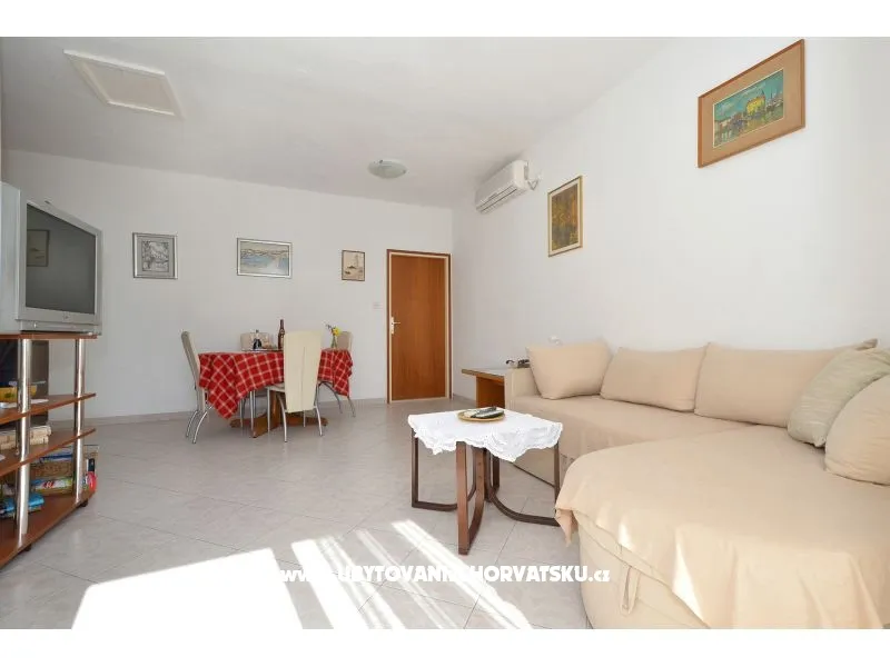 Plaćate po rezervaciji 35% depozit + naknadu za rezervaciju. Ostatak se plaća po dolasku u objekt. Minimalan boravak je 5 noćenja, a u glavnoj sezoni 7 noćenja. U galvnoj sezoni dolazak i odlazak moguć samo vikendom (petak, subota, nedjelja). Check-in je od 14h; Check-out do 10h. More i plaža su ca. 100 metara od apartmana. Prva plaža je betonirana plaža, a malo dalje (ca. 250 m) nalazi se šljunčana plaža, pogodna za djecu i odrasle. Dječji krevetić-na upit. Vanjski sadržaji: vanjski roštilj, pristup objektu automobilom, privatni parking.