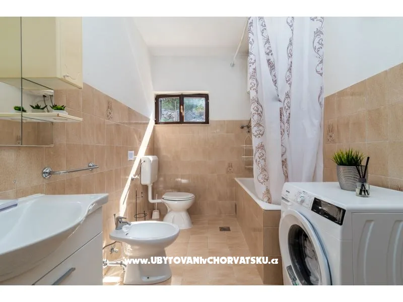 150 m od mora, prvi kat, terasa 15+12 m2, 3 spavaće sobe, internet, klimatizacija, perilica rublja (kod vlasnika), vanjski roštilj, privatni parking, posteljina, ručnici