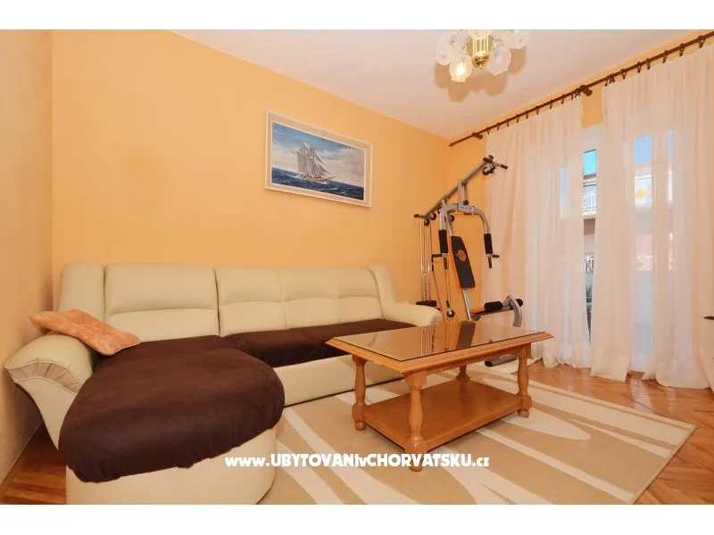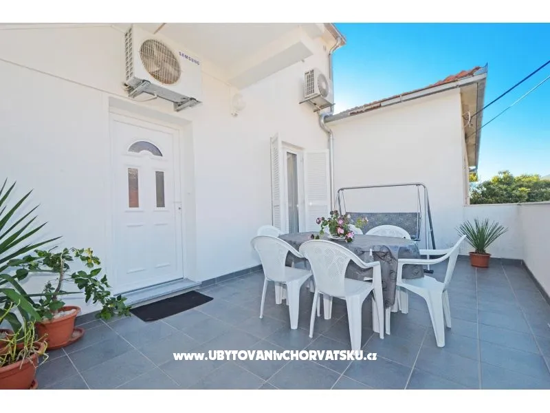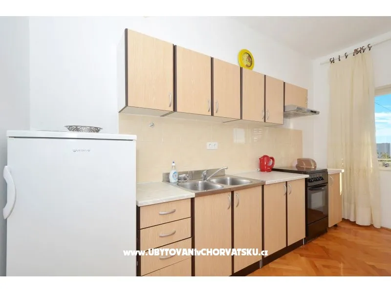 71 m2 + 35 m2 balkon + terasa, drugi kat 2 spavaće sobe, 1 kupaonica s tušem Potpuno opremljena kuhinja Klima, Wi-fi, TV Privatni parking, roštilj Kućni ljubimci dozvoljeni na upit 900m od plaže