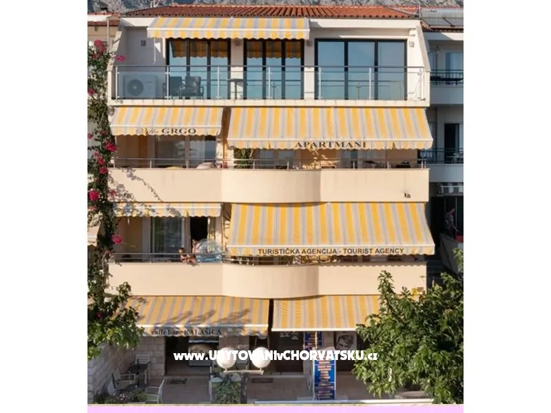 Vila Grgo smještena je u centru Tučepa, prvi red do mora a udaljena je samo 10 metara od morske obale. U ponudi ima besplatni bežični pristup internetu, klima-uređaj i LCD TV sa satelitskim programima. Najbliža plaža udaljena je samo 40 metara. Većina studija i apartmana ima vlastiti balkon i pogled na more ili pogled na planinu Biokovo. Imamo besplatan parking ispred ili iza ville u hladovini. Zračna luka Split udaljena je 75 km od vile Grgo. Usluga prijevoza iz zračne luke dostupna je na zahtjev i uz nadoplatu. Želimo Vam ugodan boravak u našem objektu Villa Grgo apartments.