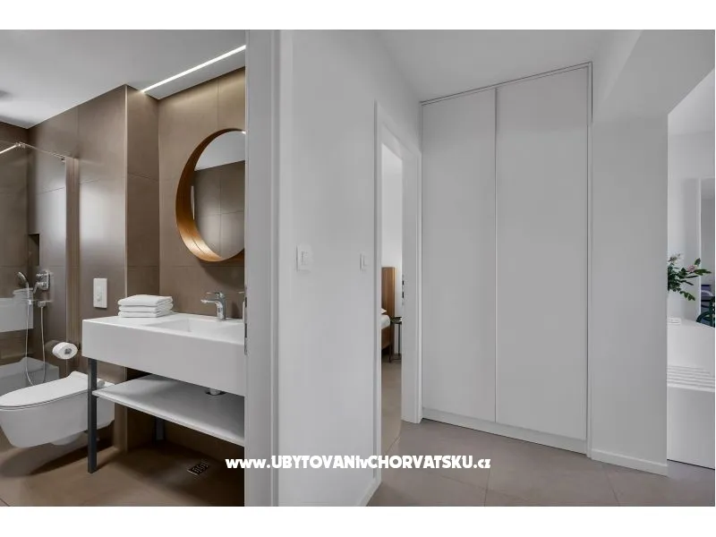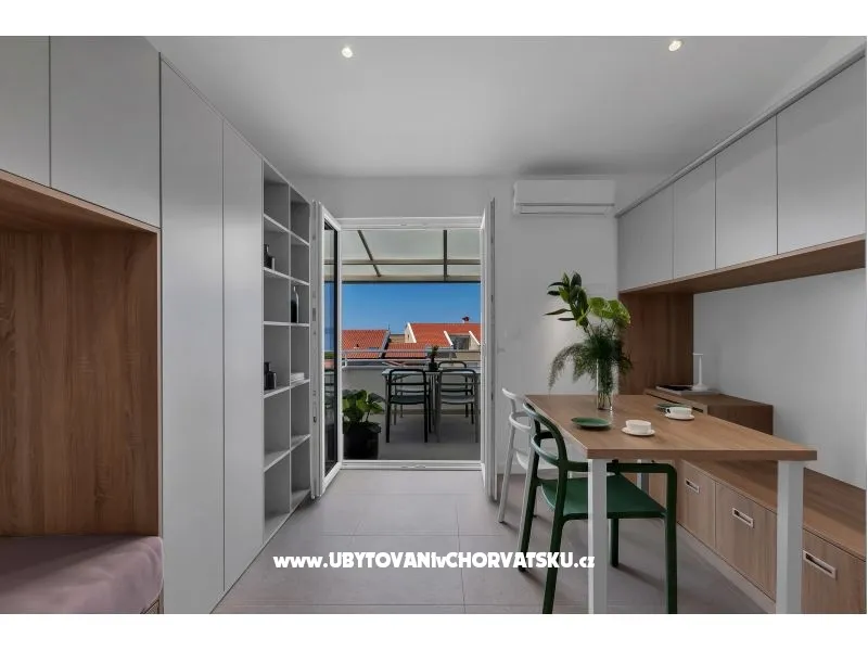 Apartmani 18 se nalaze u blizini plaže i centra mjesta. S terase se pruža prekrasan pogled na more i otoke. Samo par minuta hoda vas dovodi do centra mjesta gdje su smješteni resorani i trgovine. Stajalište za autobus i taxi je u neposrednoj blizini objekta. Apartmani imaju parking koji je za goste besplatan.