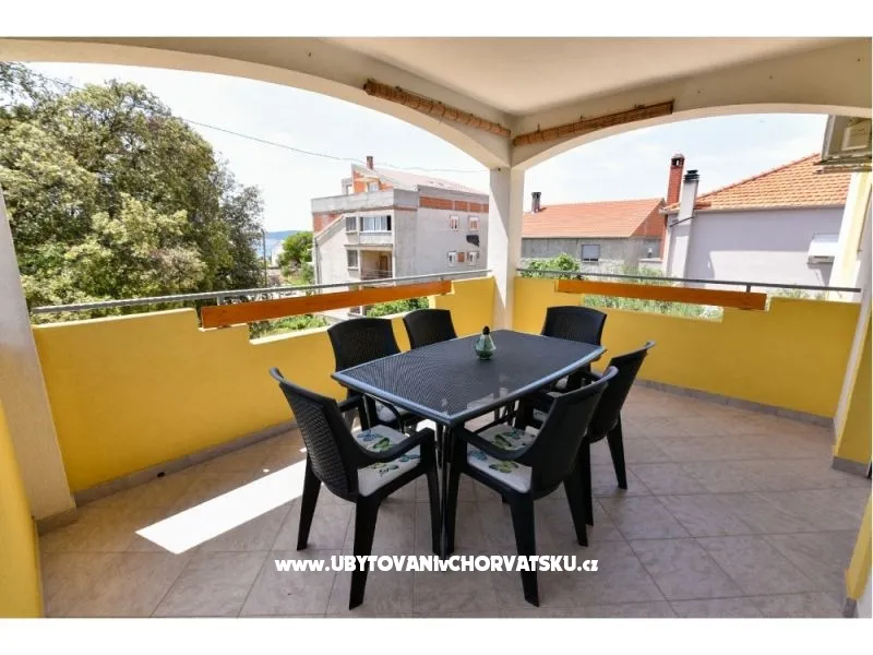 Veliki apartman sa pogledom na more, kapacitet 6 osoba, nalazi se na prvom katu kuće, od mora udaljen 2 minute pješke, od centra udaljen 10 minuta pješke, restorani udaljeni 10 minuta pješke, velika terasa, parking uz apartman.