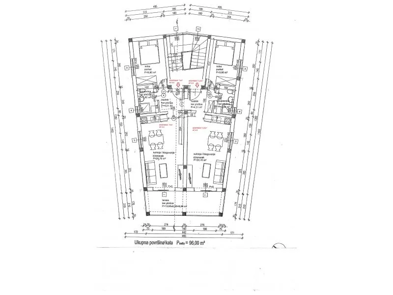 Apartman se nalazi u suterenu objekta (dio zgrade ispod prizemlja) . Ima jednu spavaću sobu, dnevnu sobu s kuhinjom i blagovaonicom. Ima veliku terasu.