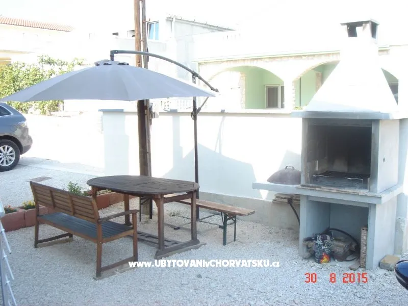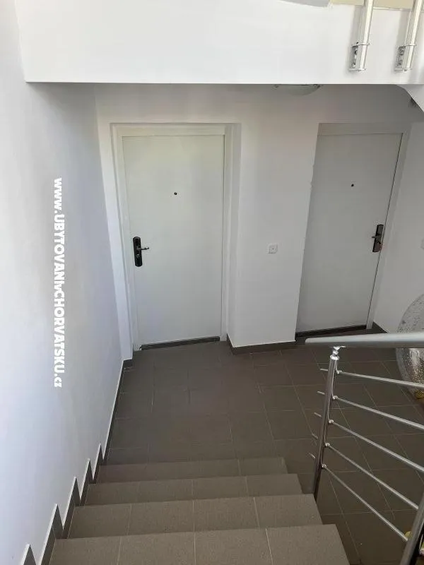 Dvosoban apartman se nalazi u suterenu objekta. Ima jednu spavaću sobu, dnevnu sobu s kuhinjom i blagovaonicom. Terasa i gril nalazi se ispred objekta.