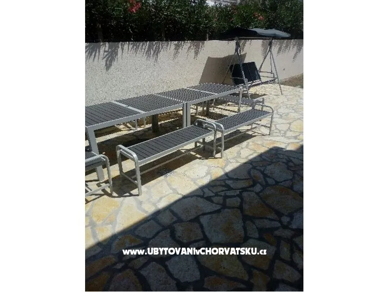 Veliki apartman sa terasom i balkonom, velika kupaona. u spavaćoj sobi bračni krevet i pomoćni. U kuhinji kauč, sef, fen. Perilica rublja u praonici u prizemlju.