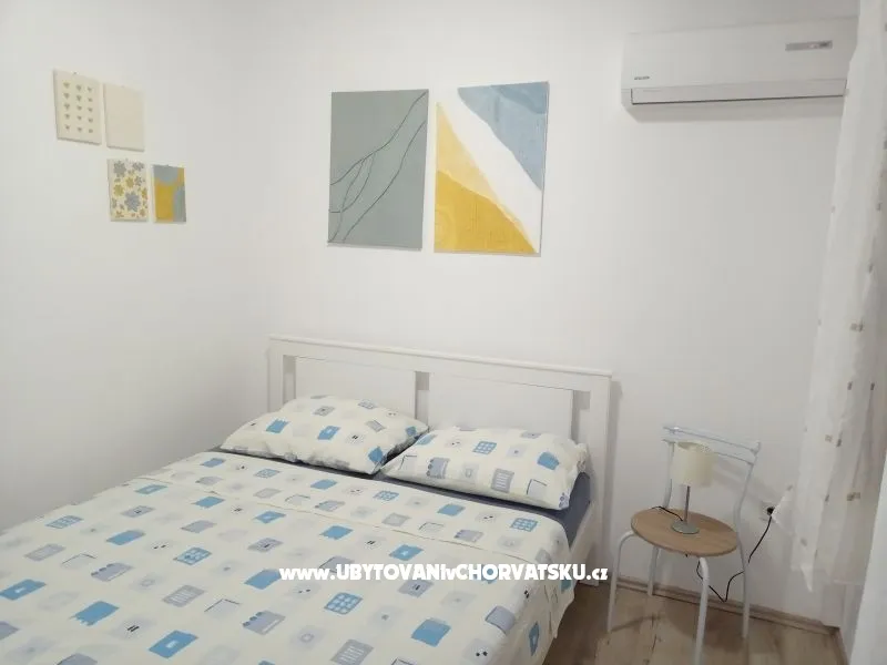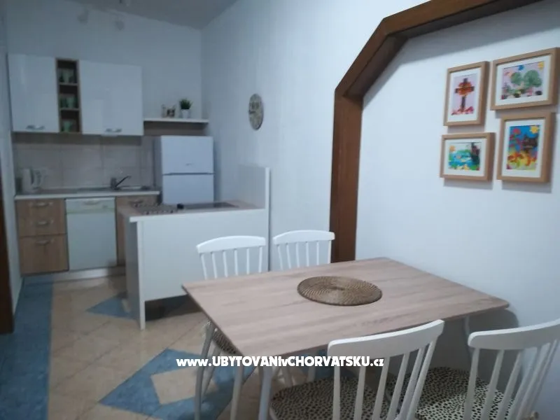 apartmani vrlo komforni, pogodni za obitelj,može i mala djeca, pogled s terase i iz soba na more, na gradsku plažu i cijeli grad Pag. U blizini ima nekoliko šljunčanih i pješćanih plaža te gradska plaža.
