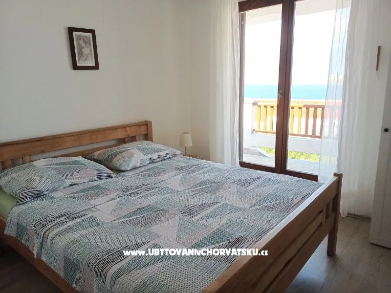 na katu, zaseban ulaz, dvije spavaće sobe, kuhinja, kupaonica i dnevni boravak. Terasa prostrana s pogledom na cijeli zaljev, plažu i grad Pag. Plaža 200 m, grad 1600, Zrće-Novalja 20 minuta parking