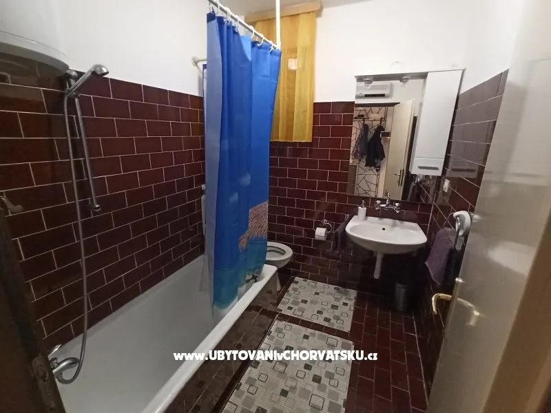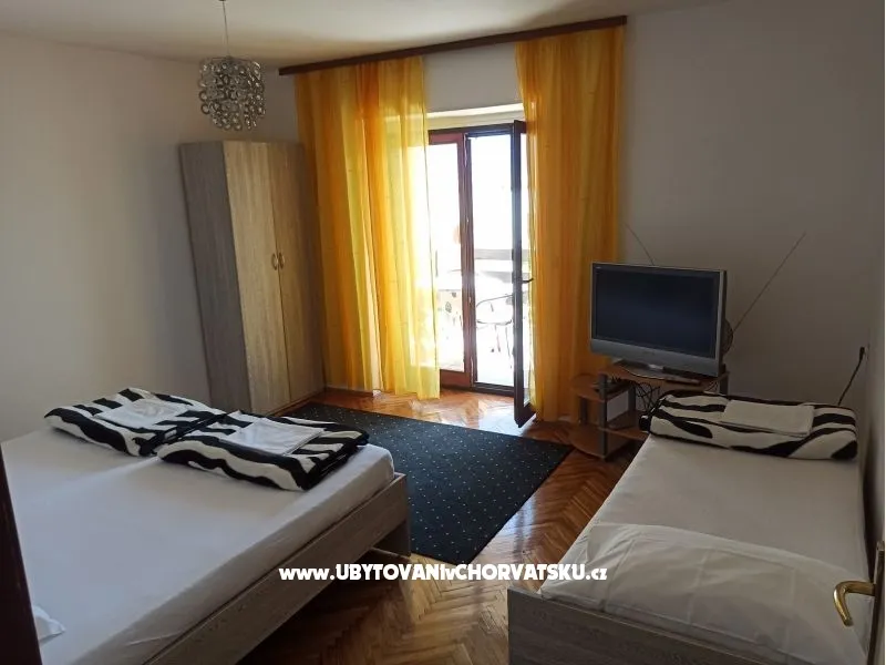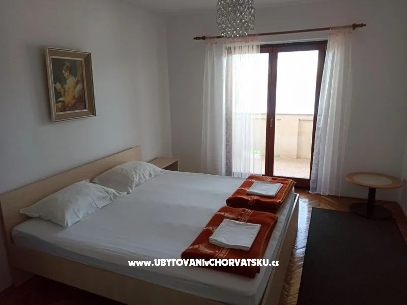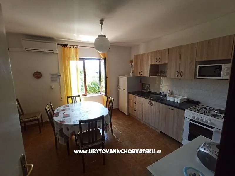 Na drugom katu se nalazi apartman za 5 ili 6 osoba koji se sastoji od tri sobe, kuhinje, kupaone i velike terase s prekrasnim pogledom na more. Apartman ima klimu, Wifi, roštilj i parking.Kuhinja je kompletno opremljena.
