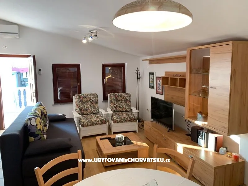 Apartman 2. je veliki apartman za 8osoba max. 3spavaće sobe terasa i balkon opremljen i lijepo uređen. Cijena za broj osoba na upit.
