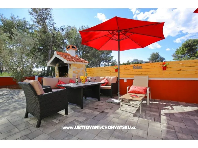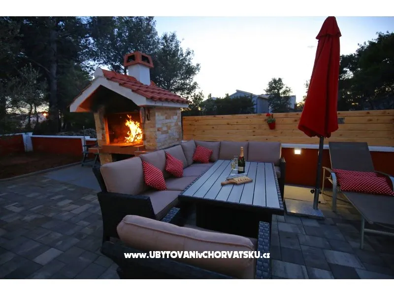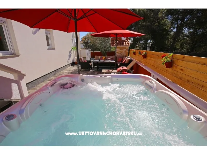 Kuća sa velikom okućnicom sa whirpool (jacuzzi kadom) za 6 osoba, velika vrtna garnitura i veliki roštilj. Idealno za ljetna druženja.. U kući se nalaze dva apartmana. Svaki apartman ima svoju terasu, parkirno mjesto, besplatan Wi-Fi, kuhinju, kupaonicu, spavaću sobu. Udaljeni smo samo 10 minuta hoda uz more do centra Vira (restorani, barovi, animacija za djecu i odrasle). Susjedne kuće su prilično udaljene od naše, tako da gosti imaju svoju privatnost. Vlasnici žive u svom zasebnom stanu u prizemlju kuće.