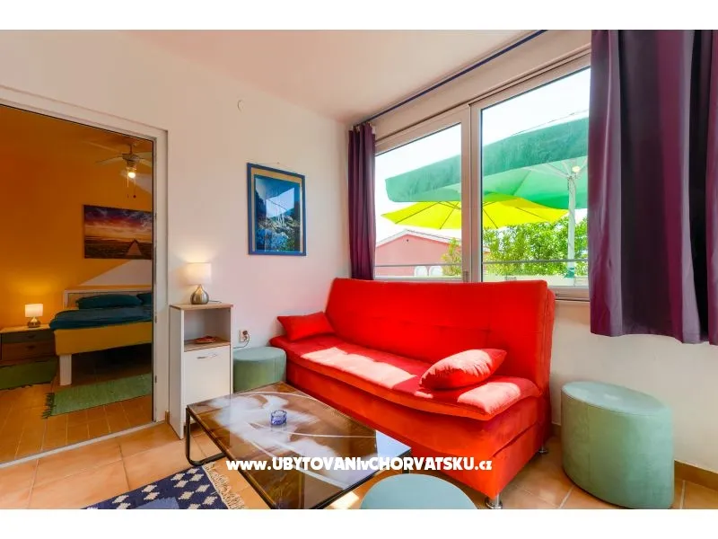 App.1(4+2) za 6 osoba, nalazi se blizu mora i plaže s pijeskom i šljunkom (ca. 120-130m), u obiteljskoj kući (u objektu (CARPE DIEM) na mirnom i sunčanom položaju! Parking se nalazi ispred objekta.